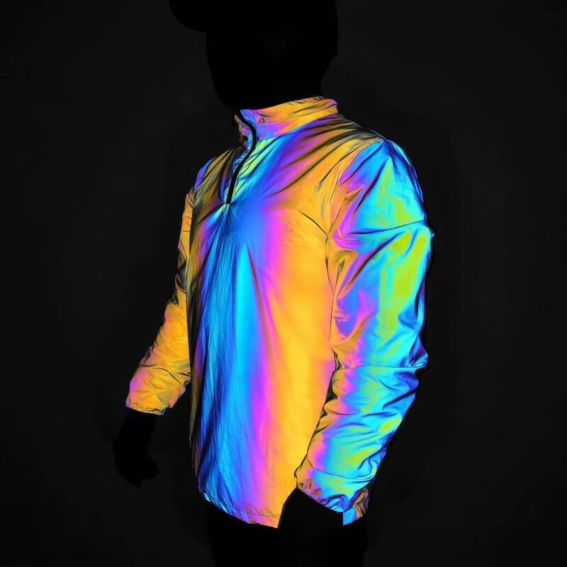 The reflective material of the fanny pack reflects light, increasing the wearer's visibility in low-power situations.